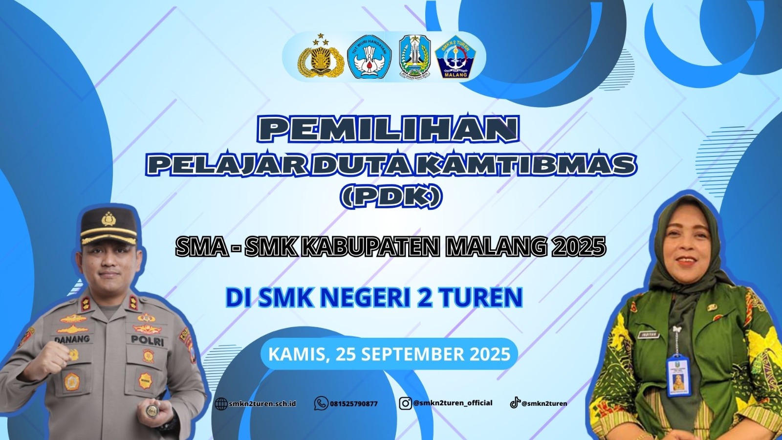 Pemilihan Pelajar Duta Kamtibmas (PDK) Tahun 2025 di SMKN 2 Turen. pendaftaran : https://bit.ly/daftar_pelajar_duta_kamtibnas